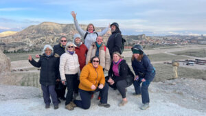 ? The buzz in the group was palpable. Today we were leaving the vibrant chaos of Istanbul behind and heading into Cappadocia’s surreal, otherworldly landscapes, a region I’ve dreamt of visiting for years. Our faithful little bus arrived (no disco lights this time) to shuttle us to the airport, and, in true AG fashion, what started as quiet chatter soon erupted into full-blown bus karaoke. You know who you are, and we salute your enthusiasm! What we lacked in pitch, we made up for in volume, turning Istanbul’s notorious gridlock into a rolling concert of 80s throwbacks and belly laughs.