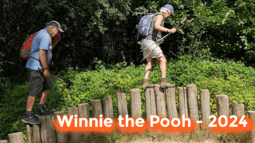 ? 2:47 PM– Paul couldn’t resist some logs that had been set up as tall stepping stones. A bit wobbly, but he made it across. Sue followed, and I held my breath as she wobbled but stayed steady. Richard was last, and after managing six logs, he stumbled and fell into the brambles below. Thankfully, only his pride was hurt, and he laughed it off.